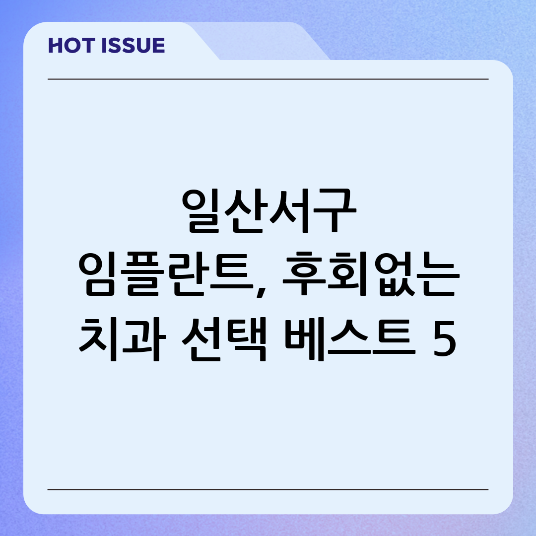 이러한 기준들을 바탕으로, 다음은 일산서구 내에서 임플란트 시술로 높은 평가를 받는 치과 5곳입니다.
