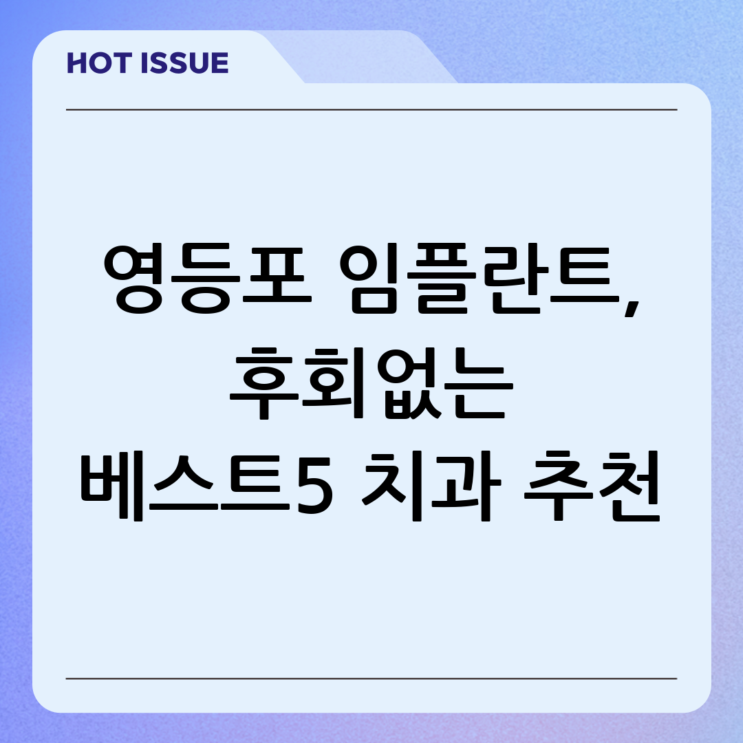 영등포구 임플란트, 후회 없는 선택을 위한 베스트 5 치과 추천!