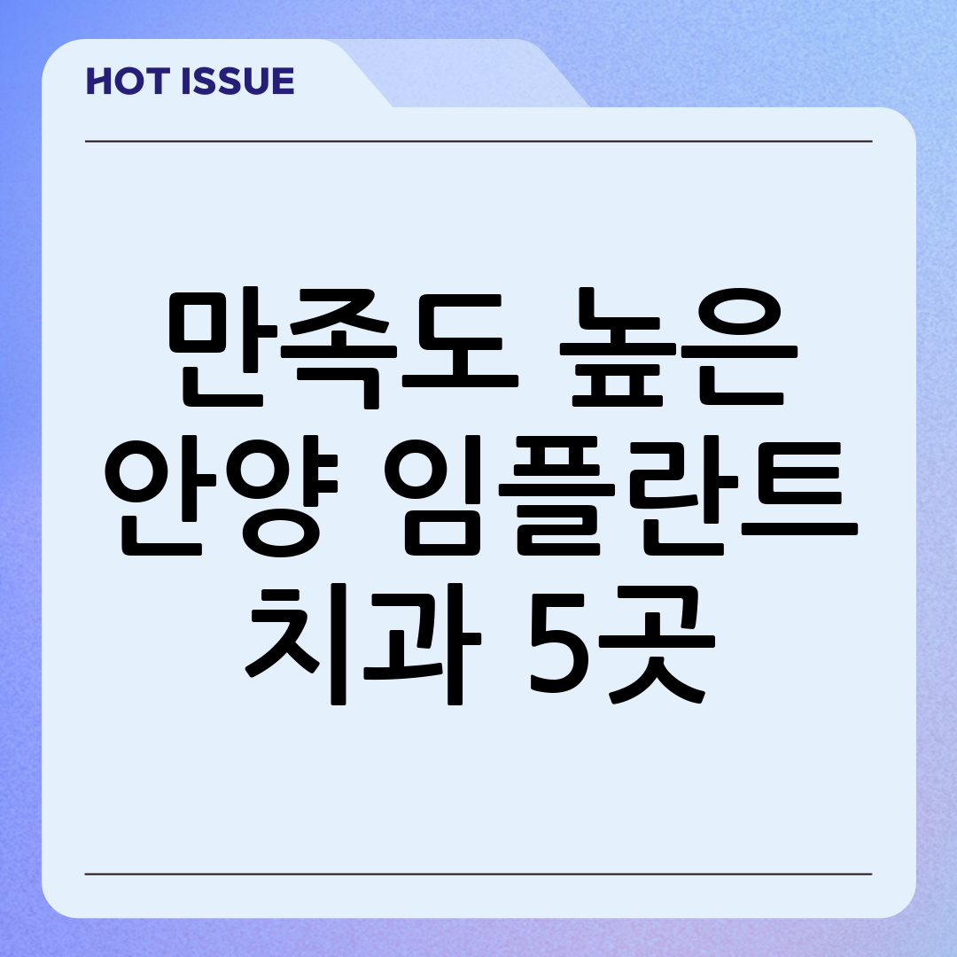 이러한 기준들을 바탕으로, 안양시 만안구에서 고객 후기와 전문성, 서비스 만족도가 뛰어난 임플란트 치과 5곳을 선정했습니다. 각 치과의 특징과 강점을 자세히 살펴보겠습니다.