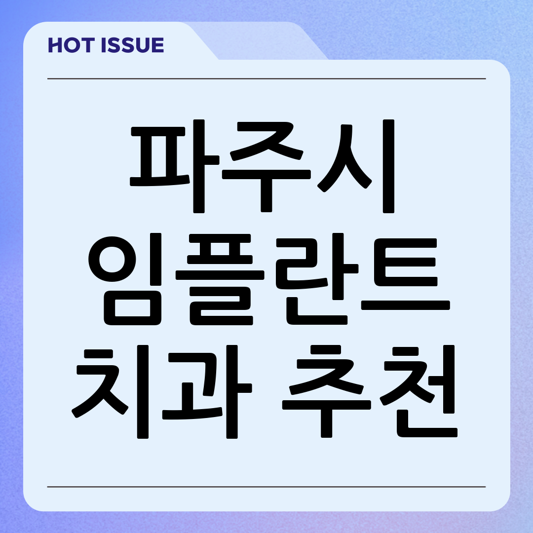 이에 본 글에서는 파주시 내에서 임플란트 전문성과 환자 후기, 의료진의 전문성, 그리고 보유 장비 등을 종합적으로 고려하여 신뢰할 수 있는 치과 베스트 5곳을 엄선했습니다. 각 치과의 특징과 강점을 상세히 안내해 드릴 테니, 여러분의 치아 건강을 위한 현명한 선택에 도움이 되기를 바랍니다.